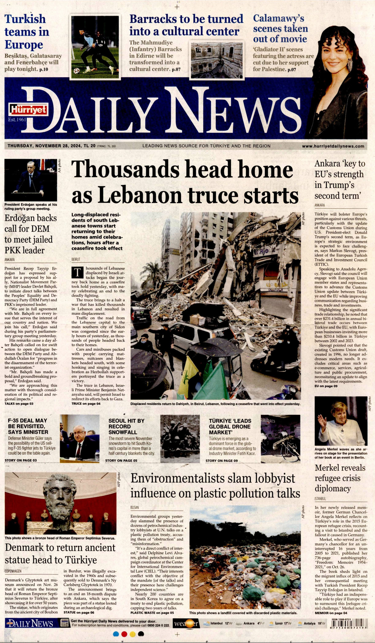 HÜRRİYET DAİLY NEWS Gazetesi 28 Kasım 2024, Perşembe Günü Manşeti