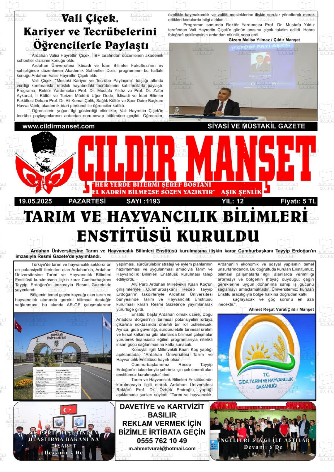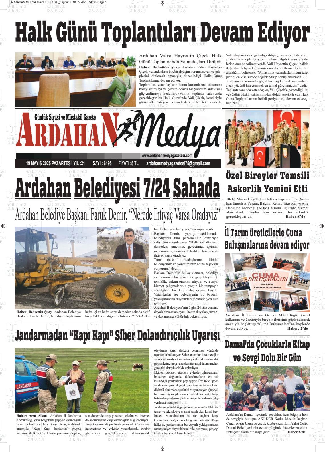 Ardahan Yerel Gazeteleri 02 Şubat 2026, Pazartesi Günü Manşeti