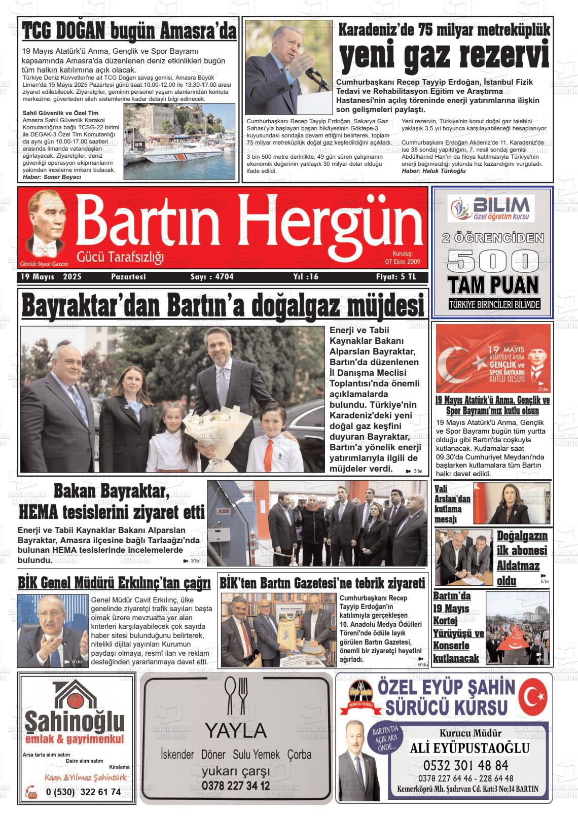 Bartın Yerel Gazeteleri 02 Şubat 2026, Pazartesi Günü Manşeti