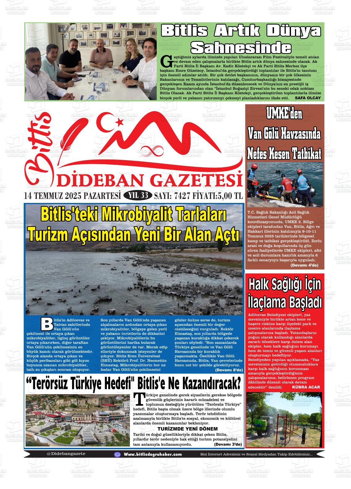 Bİtlİs Yerel Gazeteleri 16 Nisan 2026, Perşembe Günü Manşeti