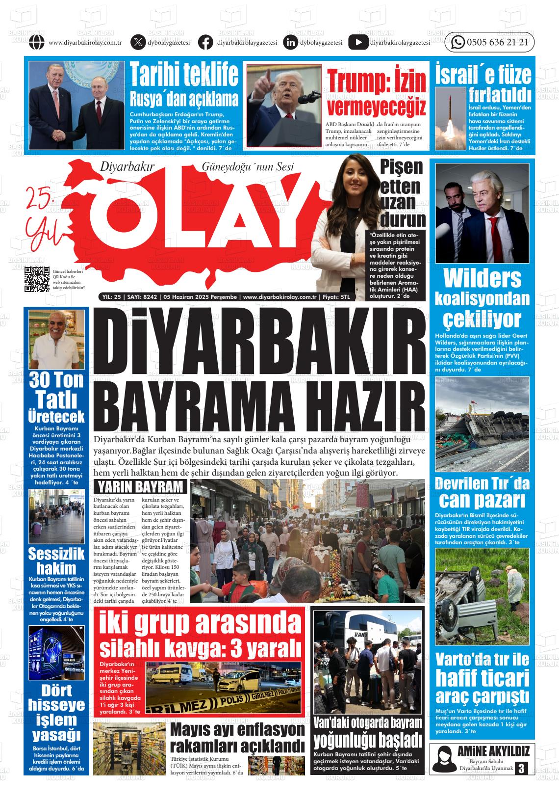 Dİyarbakır Yerel Gazeteleri 02 Şubat 2026, Pazartesi Günü Manşeti