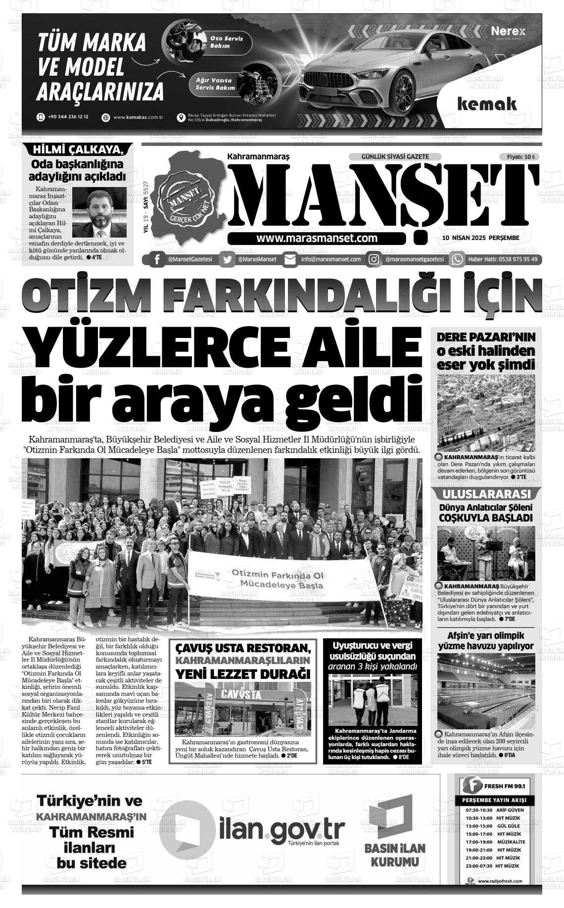 Kahramanmaraş Yerel Gazeteleri 16 Nisan 2026, Perşembe Günü Manşeti