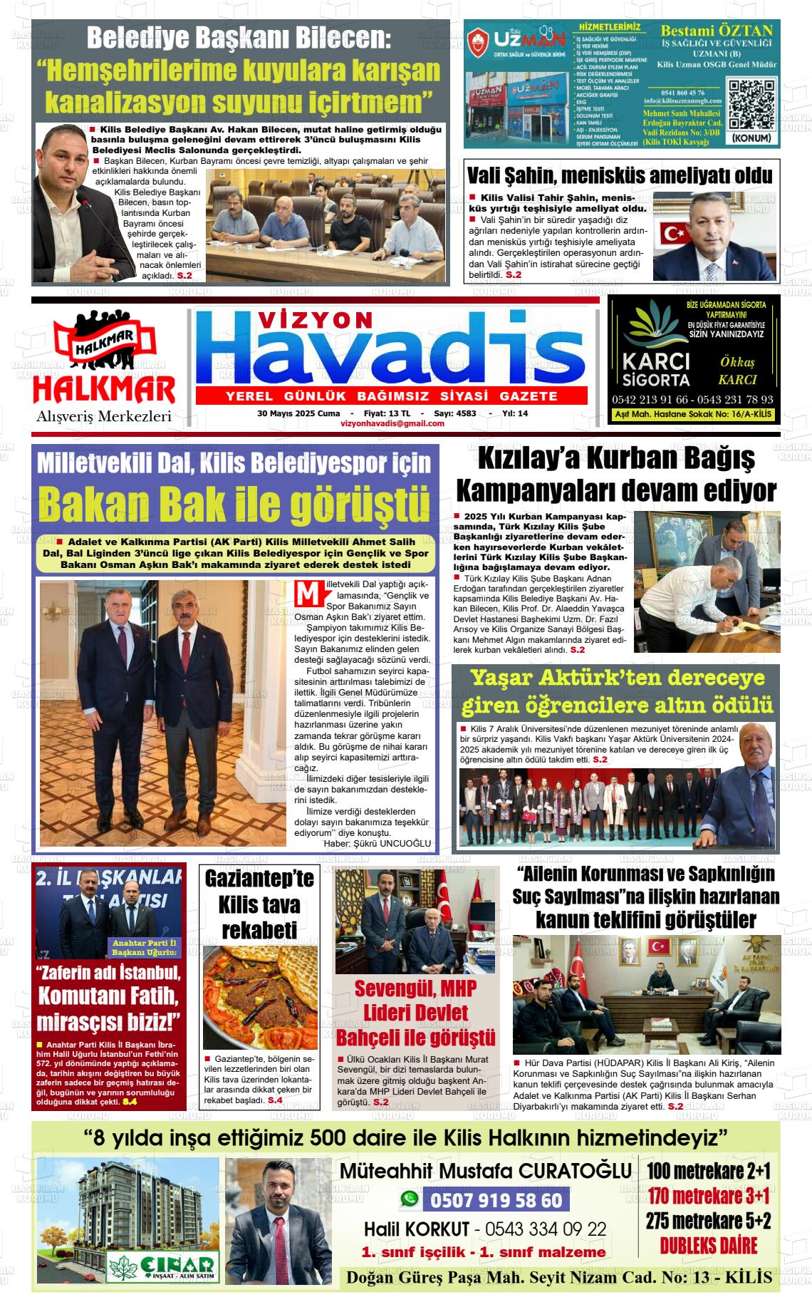 Kİlİs Yerel Gazeteleri 02 Şubat 2026, Pazartesi Günü Manşeti