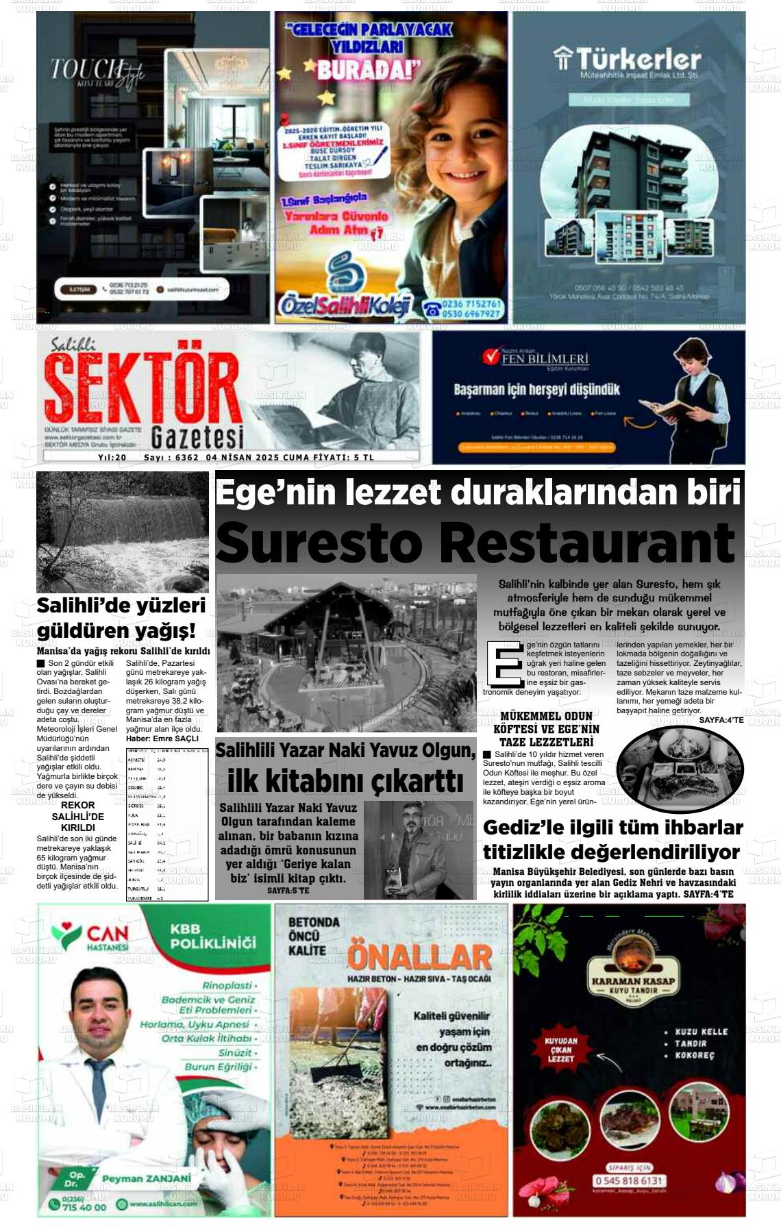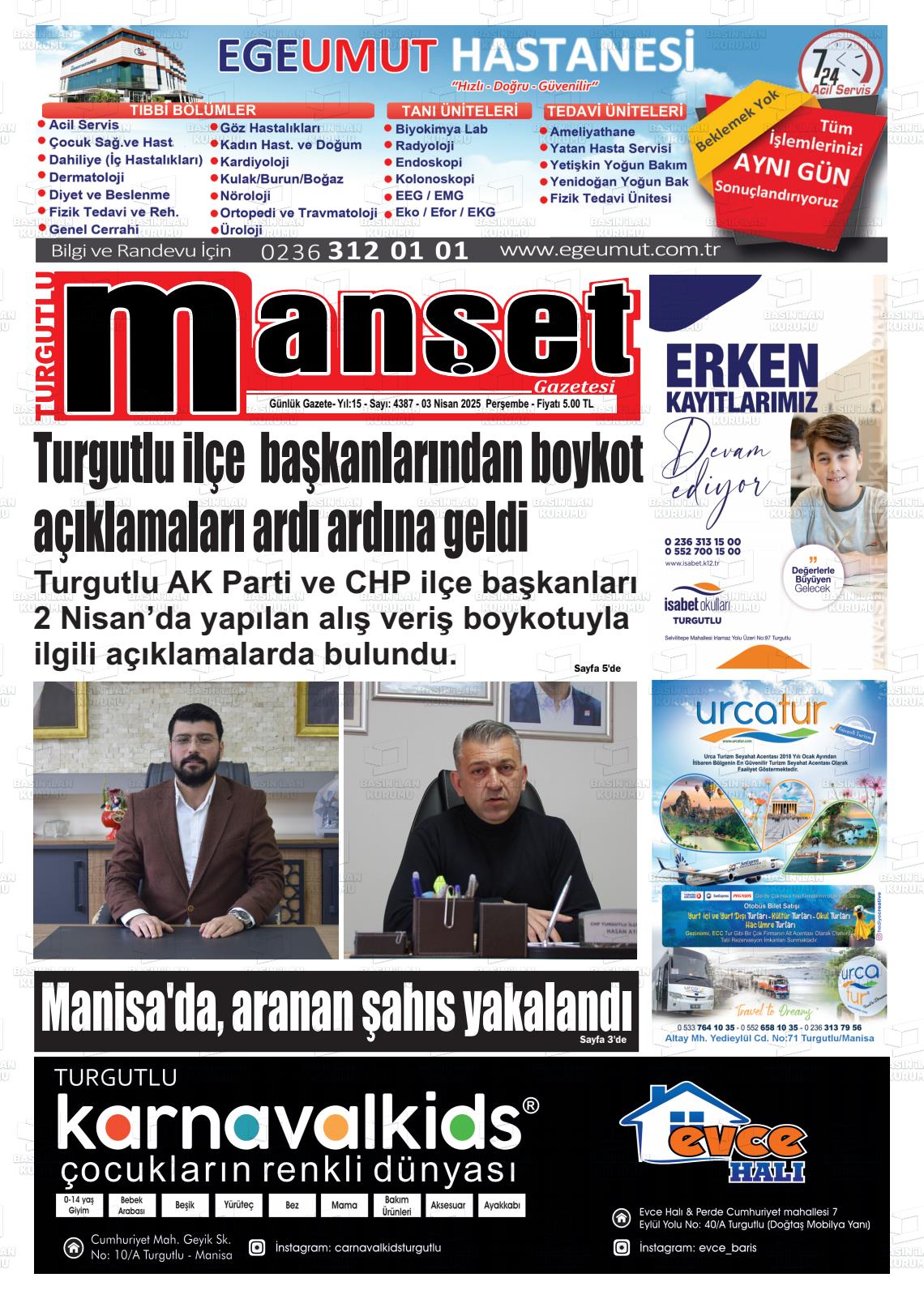 Manİsa Yerel Gazeteleri 16 Nisan 2026, Perşembe Günü Manşeti