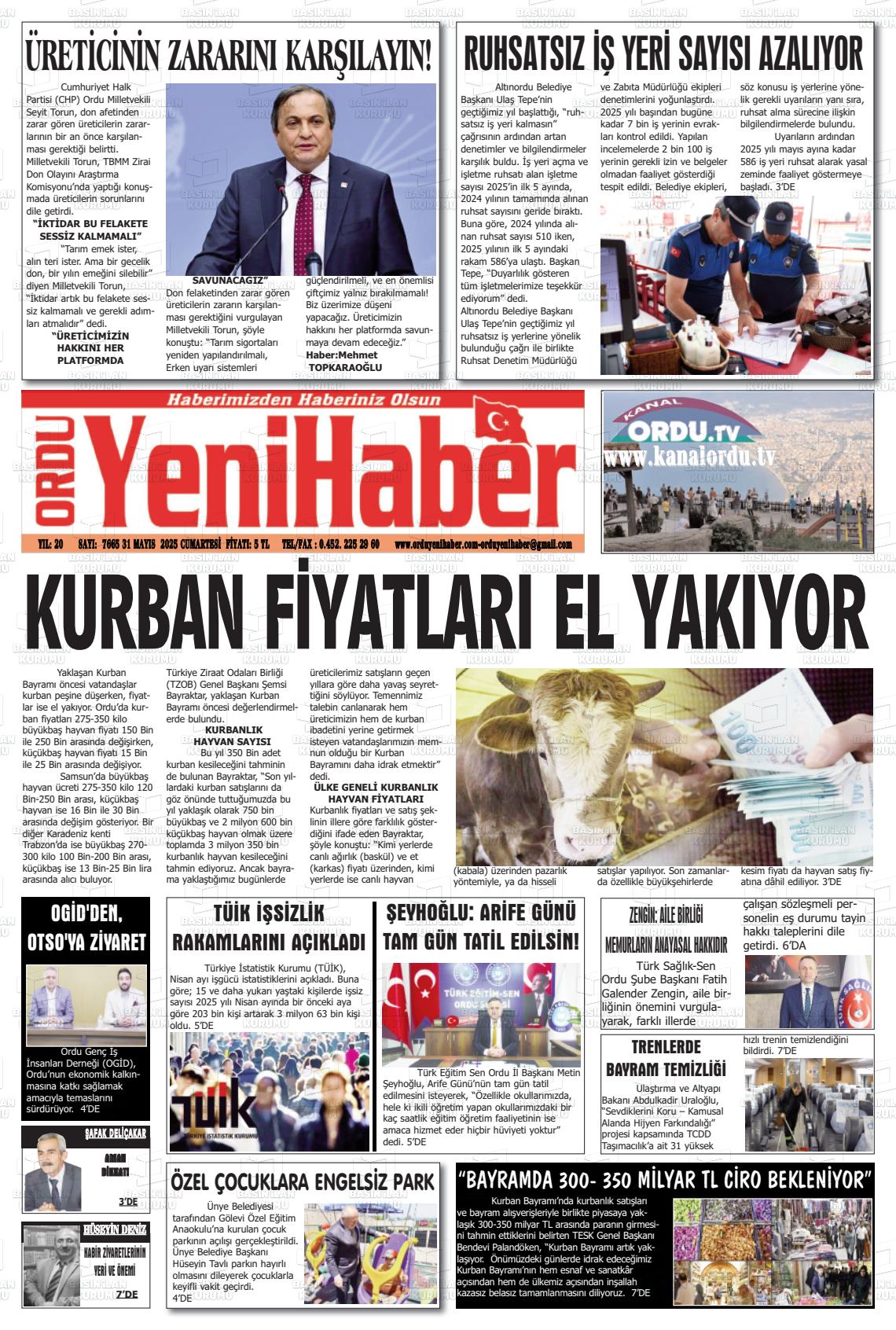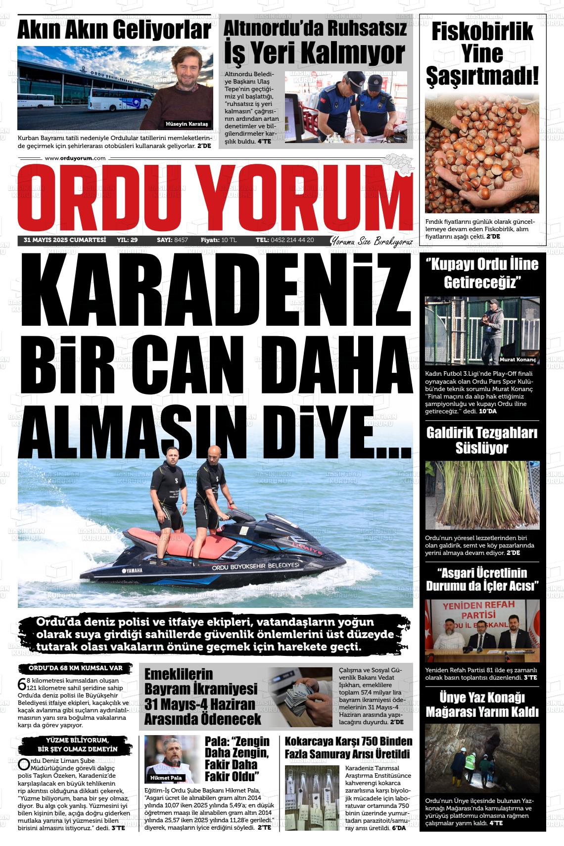 Ordu Yerel Gazeteleri 02 Şubat 2026, Pazartesi Günü Manşeti