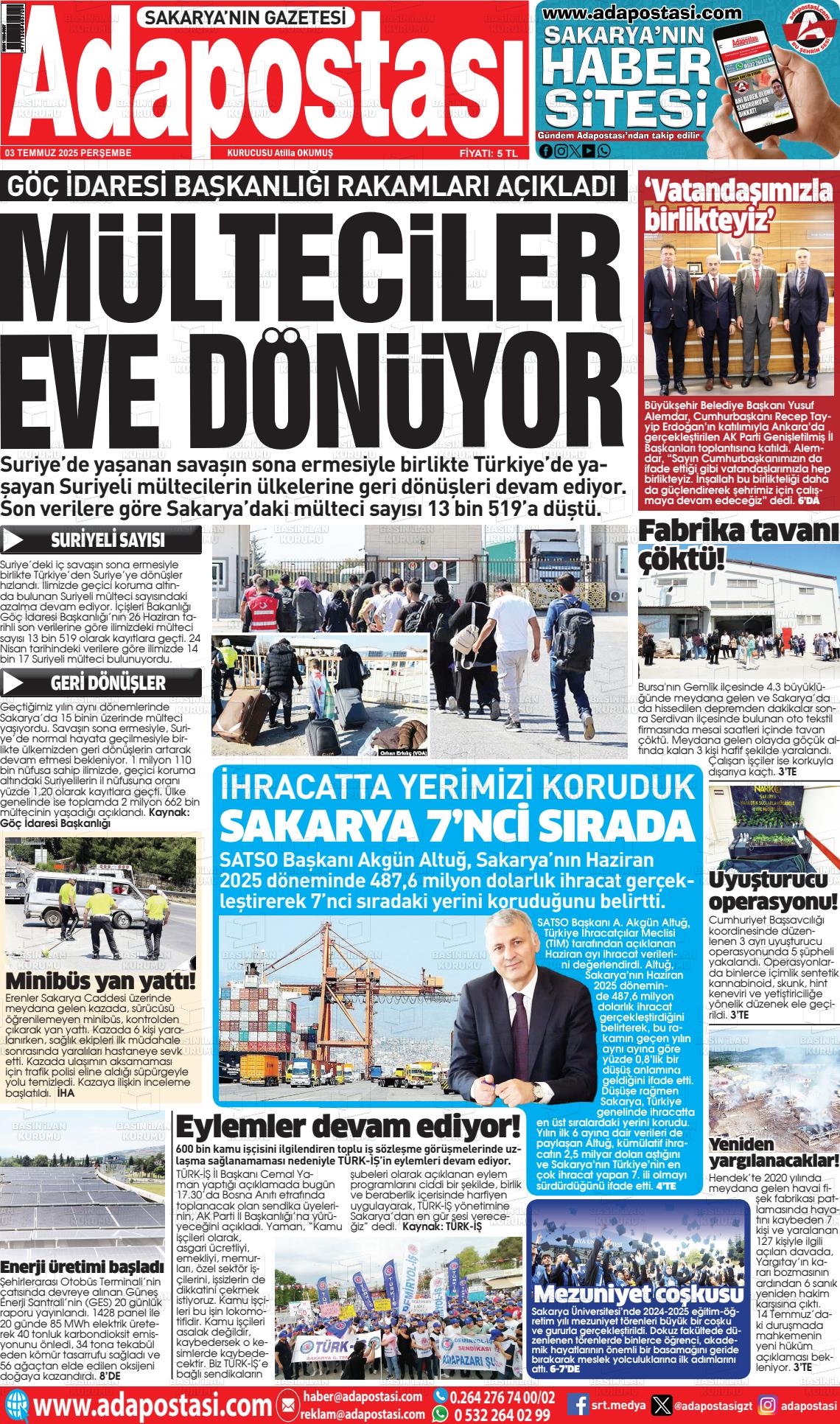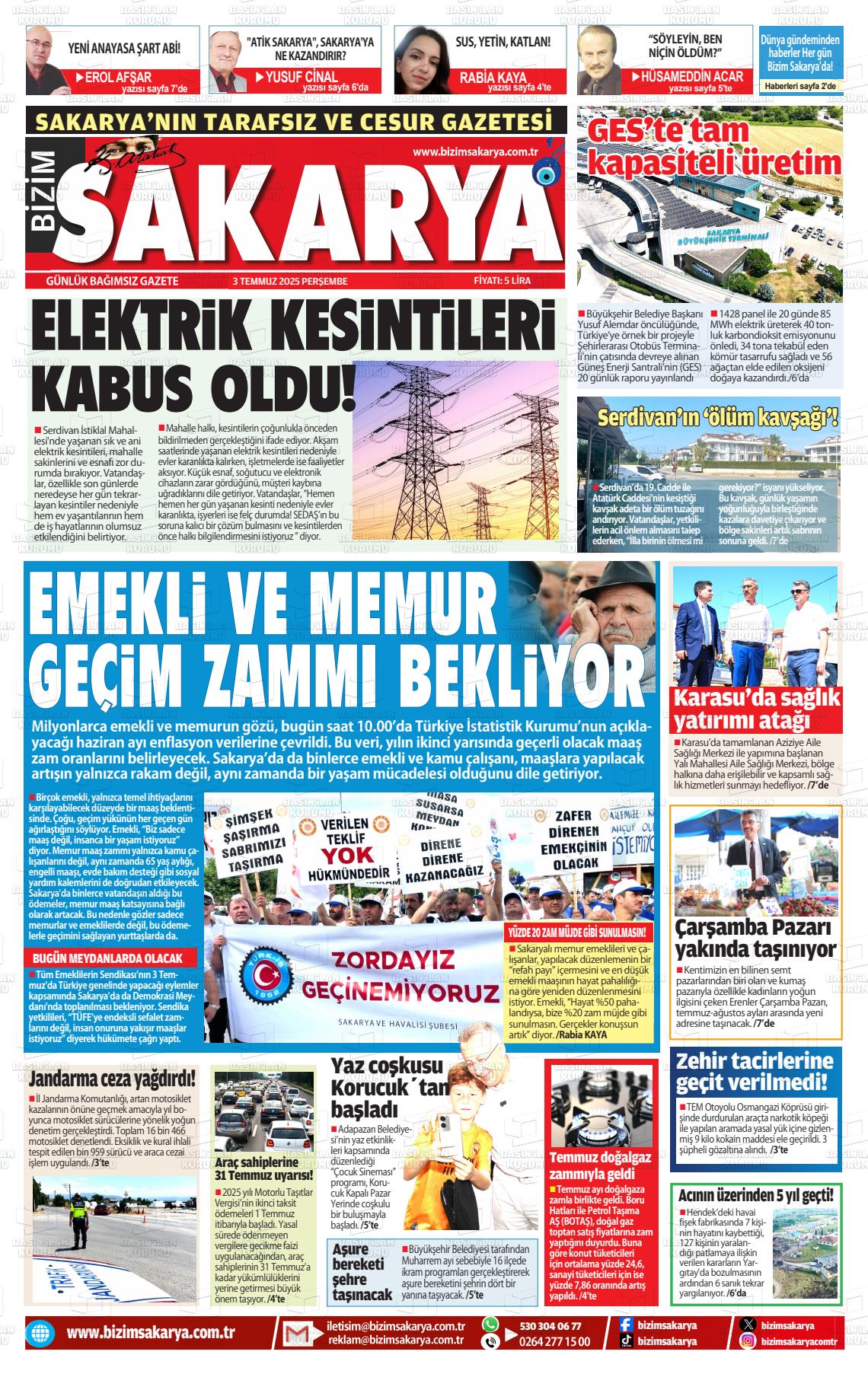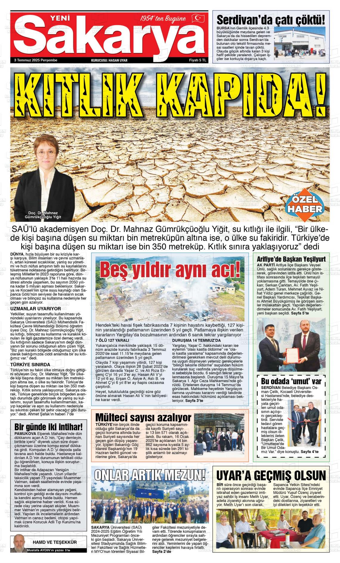 Sakarya Yerel Gazeteleri 02 Şubat 2026, Pazartesi Günü Manşeti