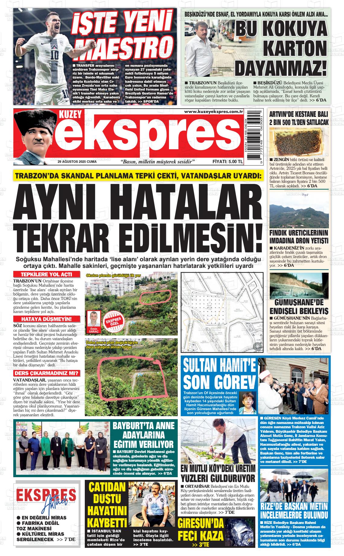 Trabzon Yerel Gazeteleri 02 Şubat 2026, Pazartesi Günü Manşeti