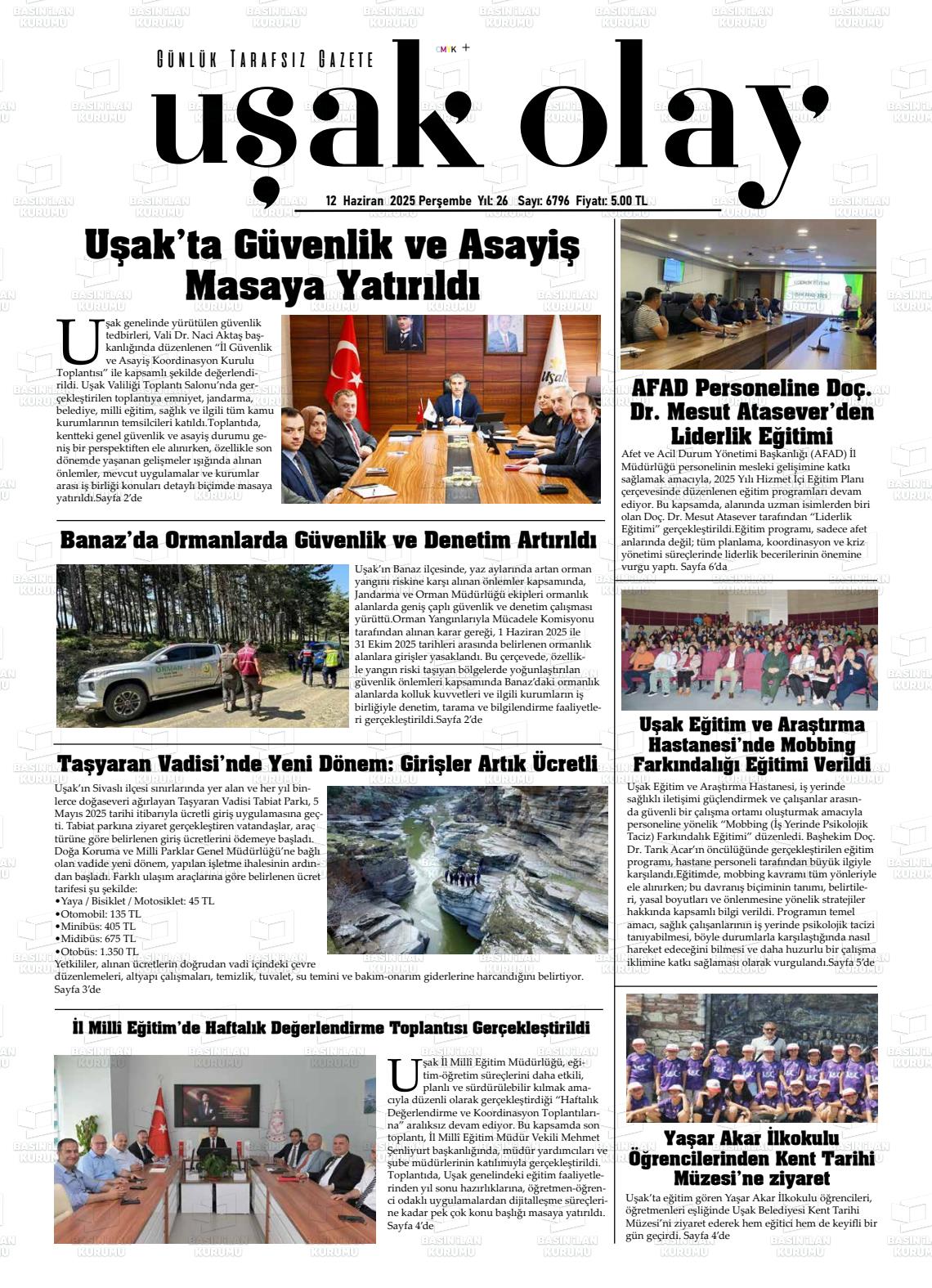 Uşak Yerel Gazeteleri 02 Şubat 2026, Pazartesi Günü Manşeti